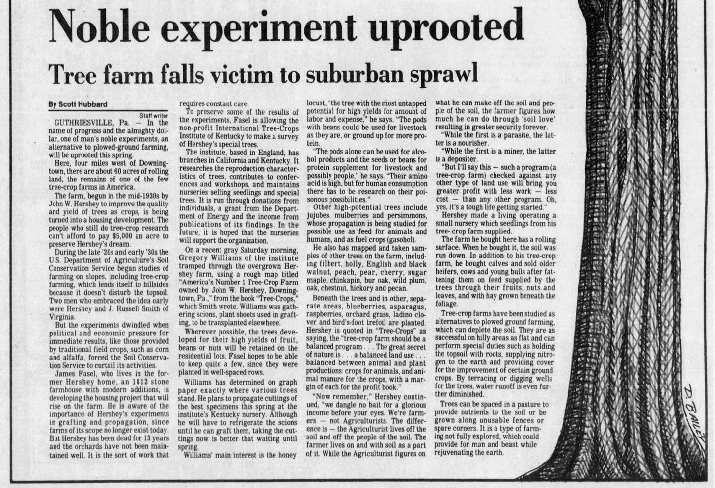But that was 45 years ago. Somewhere along the way the tree crops idea was tossed aside again, only to resurface now it seems in recent years. We know this is true because the feeling of our present time is one of re-discovery and a rekindling of knowledge and practice that crosses the lines where continuity once faded. Given our present moment, where now agroforestry is receiving federal funding and recognition, silvopasture is being implemented at scale, and specialty cooperatives are building economic models for real-world tree crop farming, I would share in the same hopes and enthusiasms for a future full of tree crops, just as Greg and Brian did in 1980.